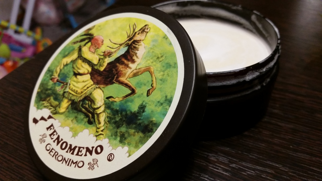 Первое бритье с Джеронимо. Из банки запах не особо понравился, думал он будет поприятнее. Он тяжелый, одеколонный, с каким то травяным оттенком. Использовал синтетику Маггард Тимбервольф, Роквелл 6s на 6 плите и Дерби Премиум. Вообще, тэшками не бреюсь почти, но тут надо было побыстрее побриться. Сделал 60 оборотов мокрым помазком, мыло отлично набирается и начал бить в чаше. Минуты 1.5 и у меня сметана средней густоты, без пузырьков, очень однородная. Как начал наносить на лицо - отлично, пена не течет, но при этом она не сухая и какая то приятная что ли, жирненькая, влажная, не опадает вообще, обволакивает. Такую получал из Стирлинга на бараньем жире, от других мыл не припомню такую. По скольжению станок шел отлично, но надо с клинком пробовать, тогда станет ясно как скользит. С тэшкой все идеально, постскольжение в наличии. После бритья чувствую, что лосьон как бы не нужен, но для запаха нанес. Пока все понравилось, на очереди Мысли + опасная бритва, вот тут будет более качественное тестирование. Кстати, запах Мыслей из банки мне понравился больше, он более утонченный и не такой кричащий, нюхать его приятно