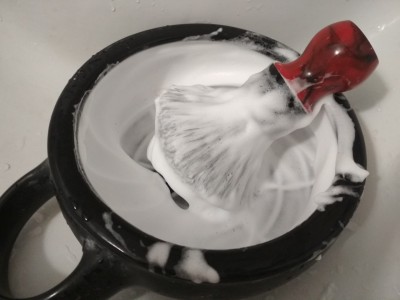 Пена должна быть густая, не просто много жидкой пены а именно густая пена с большим количеством мыла, в противном случае первый проход будет нормально брить, а на втором проходе будет подтормаживать бритва. Я так с мылом КатринДо "ошибся", пены вроде много, а мыла набрал мало и даже была мысль "разоблачающий" пост писать, что все не так, как нам продают ). Вот только определить качество пены возможно только исходя из практики, я читал что должна быть густота жидкой сметаны, что бы типа как шапка стояла - но с малым количеством мыла и немного дольшей работой помазка этого добивался. Но только достаточное количество помогает бритве скользить, не экономьте мыло - это больно (по крайней мере на начальном этапе)