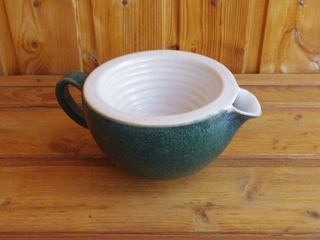 Re: Кружка для бритьяЕсть у меня такая миска. Чтобы помазок не заваливал ее на бок положите ее набок - она имеет шаровидную форму и отлично держит равновесие. У меня такая только диаметром побольше.