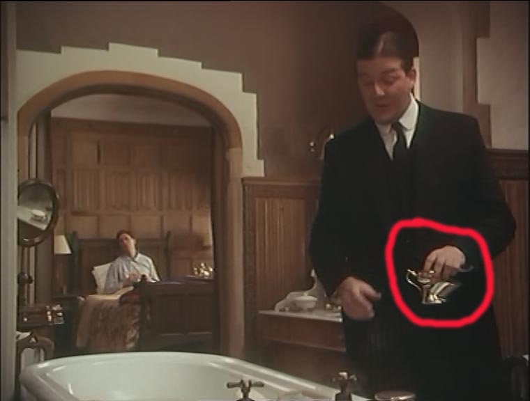 Re: Кружка для бритьяКстати, потом этот же аксессуар вместе с помазком фигурируют в конце эпизода, но совсем в другой обстановке, на этот раз в квартире главного героя (до этого действие происходило в гостях).