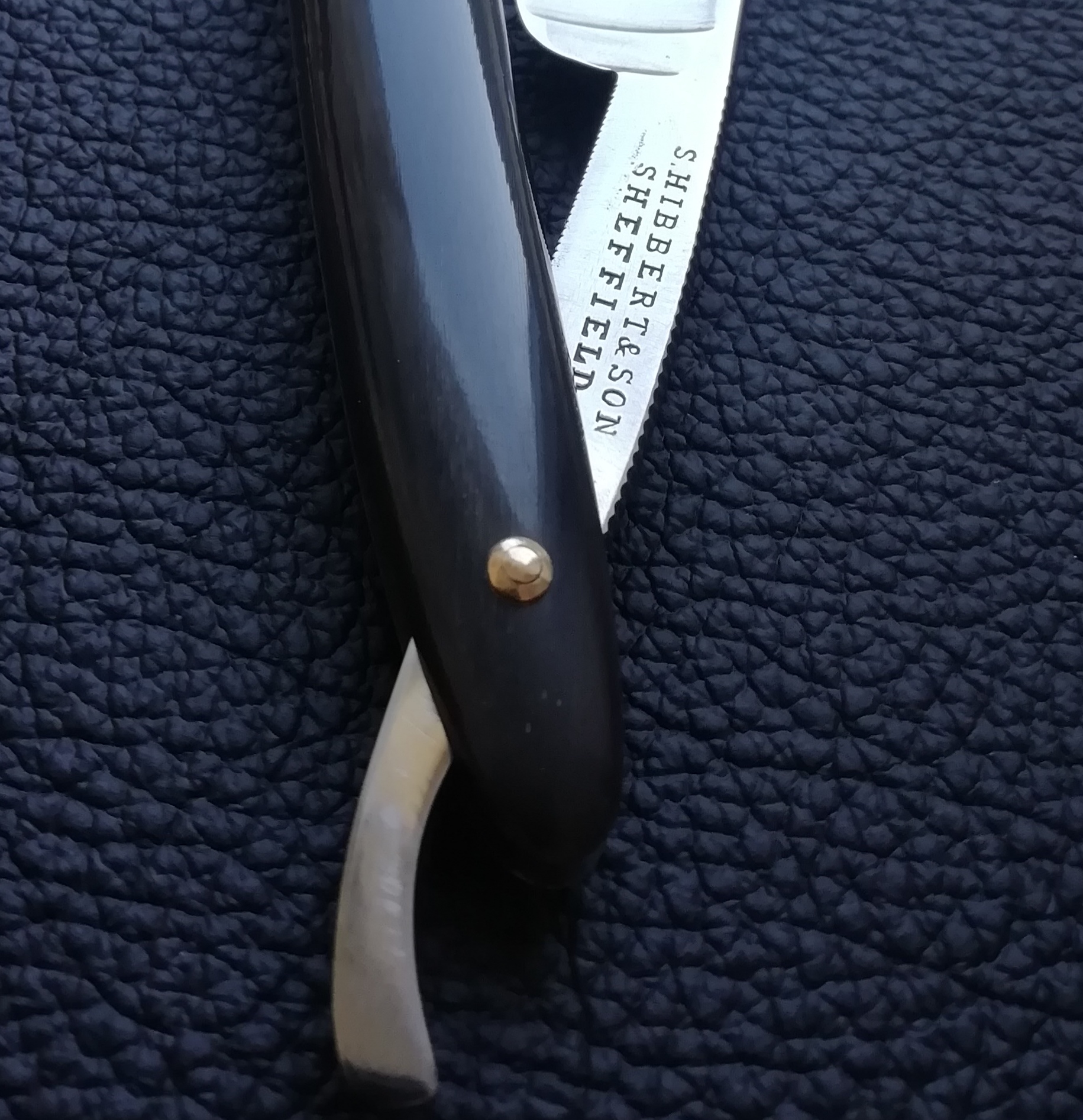 Ручка (оправа) бритвы - изготовление/ремонтНу вот, ту ручку из оргстекла, что показывал выше, пристроил к старенькому клинку СТИЗ "Экстра", 49 года. Первая клепка верхнего пина не удалась, клинок перекосило и пришлось вставлять другой пин. Со второй попытки встало все ровно. Осталась маленькая проблема, на отдельных заклепках немного острые края. Клепать дальше, боюсь получить трещину, а если сгладить их надфилем, то можно поцарапать ручку. Подскажите как лучше их отшлифовать, чтобы не цеплялись острые края заклепки?
