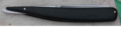 Re: Ручка - ремонт, замена, изготовлениеНа лезвии была здоровенная трещина. Укоротил лезвие до 60 мм и сделал ручку из эбонита. Оси в виде шпилек, 2.5 мм.