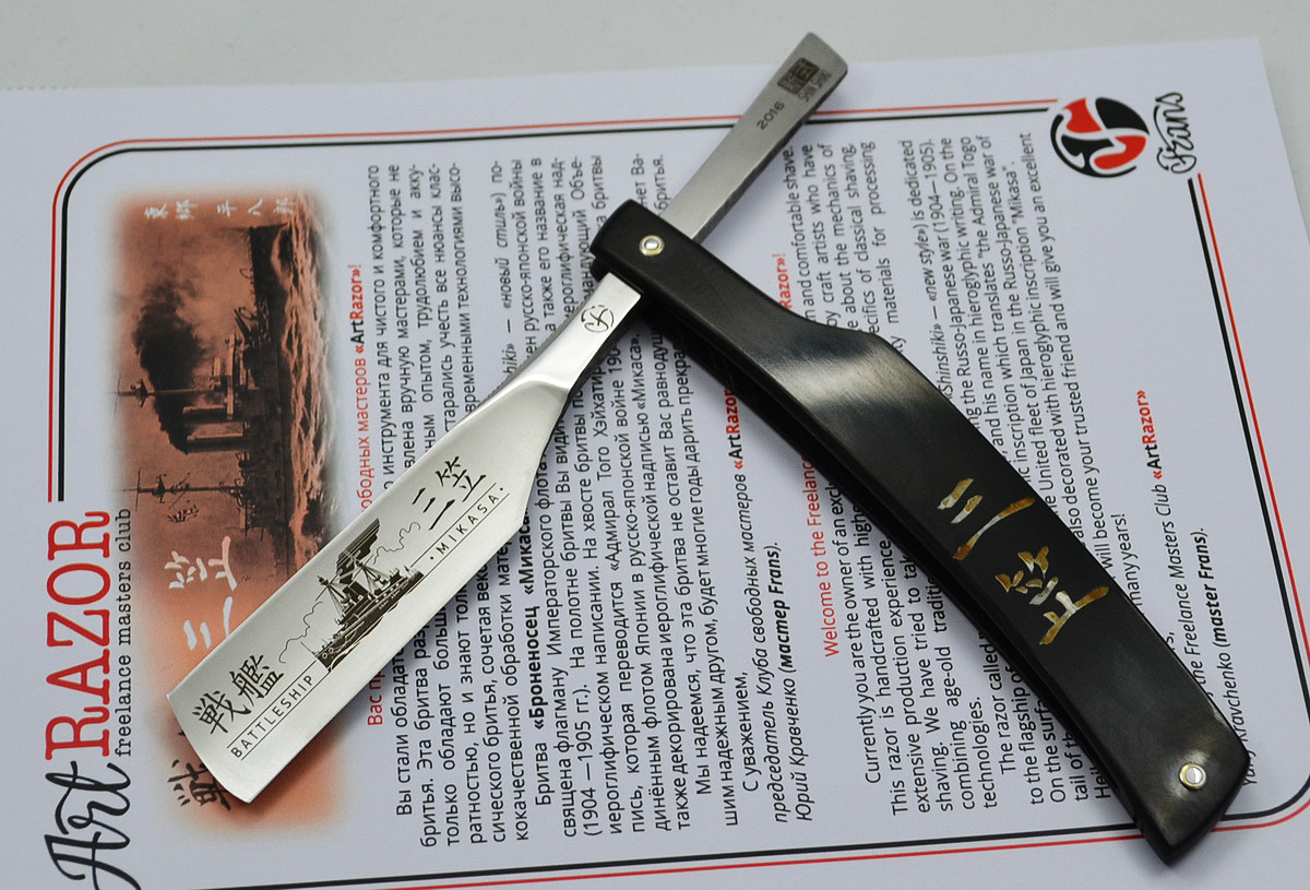 Броненосец МИКАСА, Адмирал ТОГО. Творческая группа та же и unsui - японоконсультатн Сталь: Uddeholm Arne, ширина 6/8, вогнутость 1/4, ручка - рог, лазерная гравировка. Продано. Кто сейчас на конференцииСейчас этот форум просматривают: нет зарегистрированных пользователей и 1 гость | |