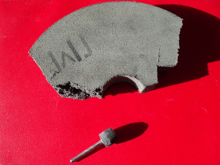Я беру резиновый круг, и ножом отрезаю от него небольшие куски а затем на простом абразиве ровняю. На первом фото крупное зерно в резине, а на втором мелкое.