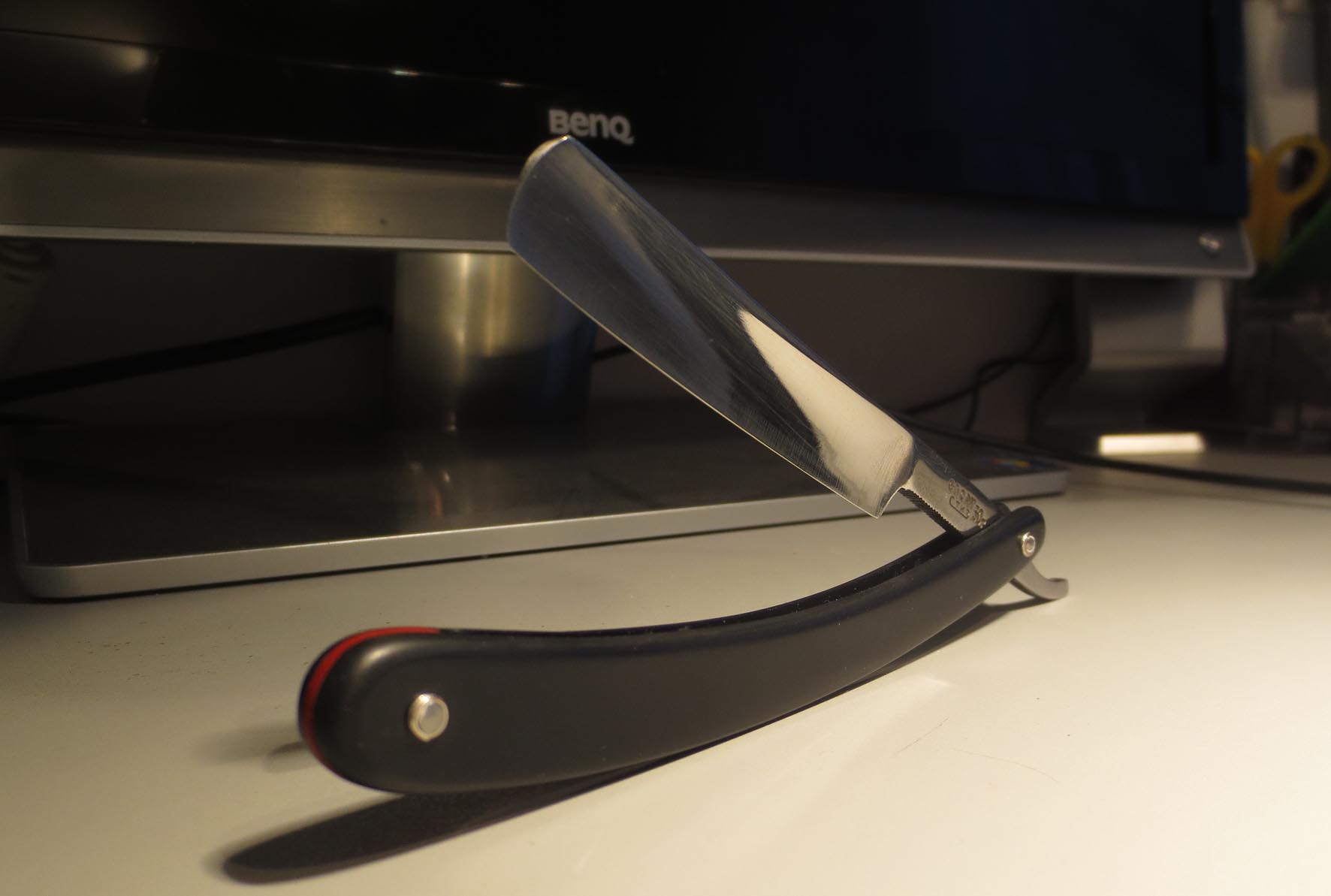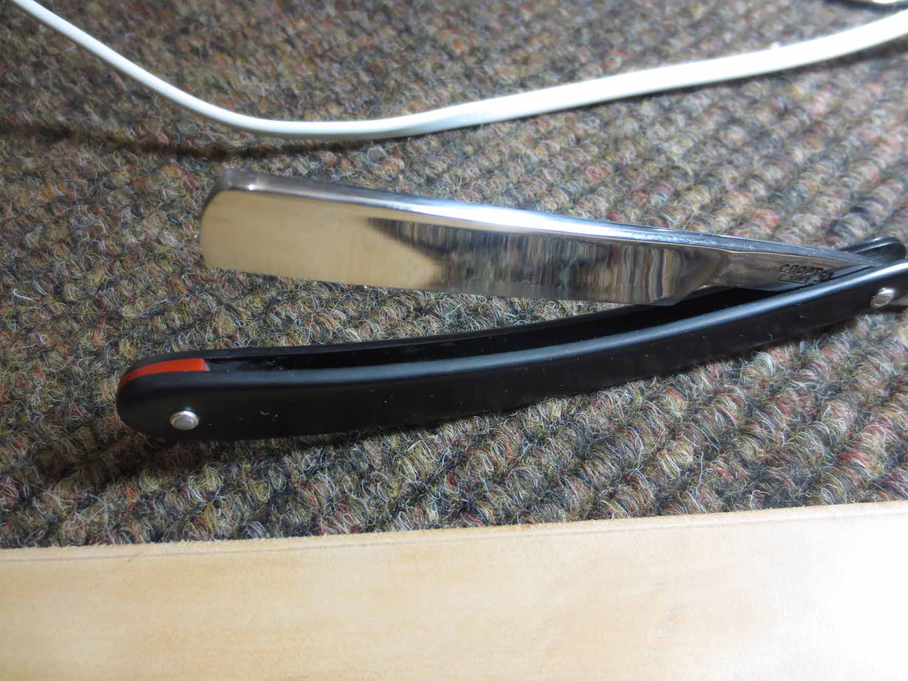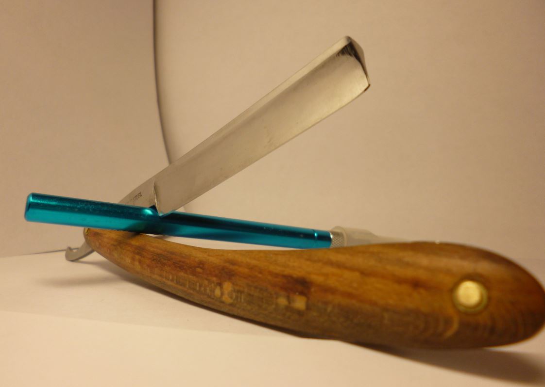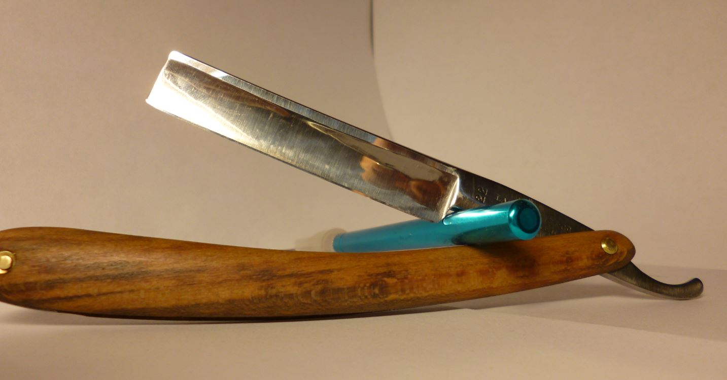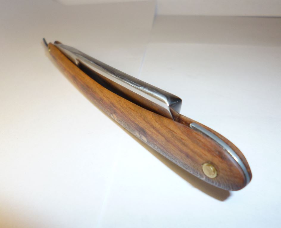 Бритва досталась как довесок к крупной покупке у нашего эстонского друга, в достаточно плачевном состоянии, с обратной улыбкой, сточенным носиком, коррозией и без ручки. Мы ведь не ищем легких путей. Для начала укоротил носик, вычистил ржавчину в пределах разумного, выровнял кромку. Заточил, вполне себе комфортно побрился. Остаточная ширина получилась 15мм. Сделал ручку. Дерево - бук. Пропитка - льняное масло. Клинышек - олово. Помидоры и критика приветствуются. Еще фото Show Изначальное состояние (осторожно, шок-контент) Show