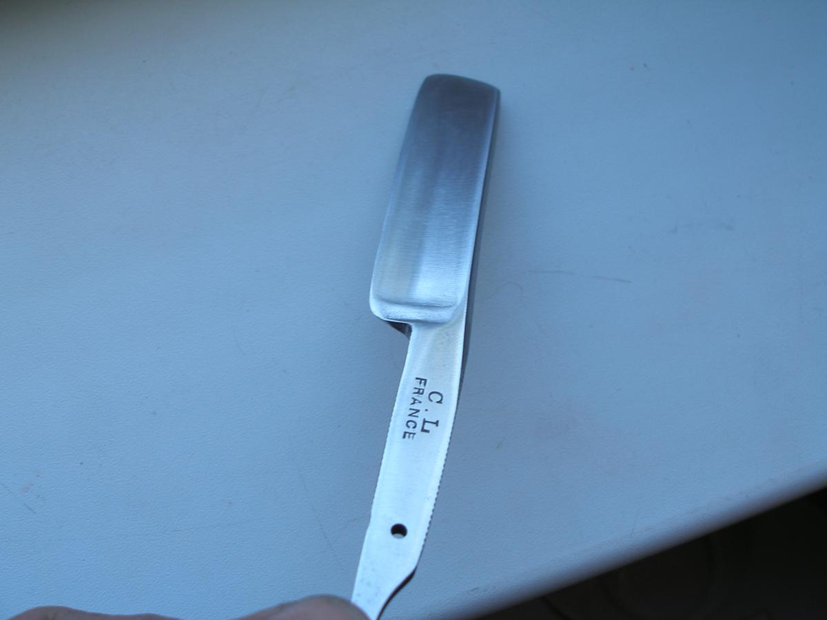 Вот фото обратной стороны Обуха И вид полотна Долго пытался сфотать рк, ничего не получилось. Затачивал вручную на камнях. Насадку с наждачной бумагой использовал только на вогнутой части бритвы.