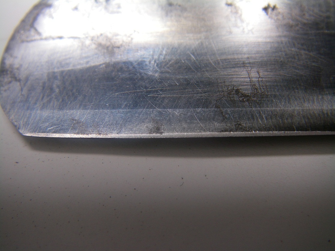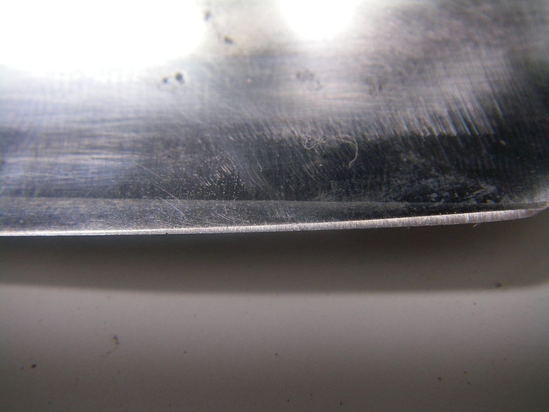 Добавлено спустя 1 минуту 48 секунд: Нужно точить и посматривать. Может и поймаешь момент, когда по всей кромке будет ровно, без раковин и сколов. Это не быстро. Там сошлось, а с другой сторонв вылезло. Так что работы хватит. Ну в целях тренировки, как сложная заточка пойдет.