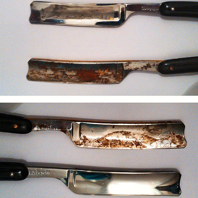 Подскажите, пожалуйста, уважаемые те, кто в теме. Есть бритва "Гравюра" от "Труд Вача". Хочется ее освежить, придать блеска. Но боюсь, что даже если очень нежно, легкими движениями, суконкой с ГОИ пройти - то рисунок пропадет. Может, в самом деле, лучше не трогать? Re: Начинающие реставраторы...Так сам рисунок у тебя чист. Заклей. И пройдись выборочно. Только не гои. Алмазная или эльборовая паста. 1/0.