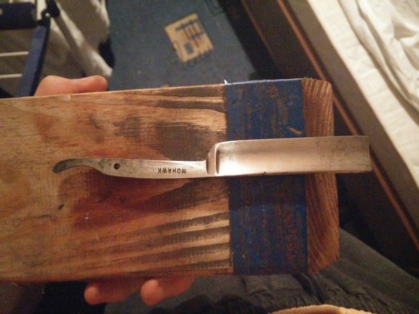 Восстановил по мере возможности до рабочего состояния Army Razor Thomas W. Ward. Клинок подарил мне Arma, оправу смастерил из имевшегося дерева непонятного происхождения. Клин из рога, пины и шайбы - подарок того же Arma, да и сама тема бритвенная тоже его подарок за что ему мое велике дякую! Не уверен, что четко следовал правилам размещения фото, но надеюсь на снисхождение модераторов.
