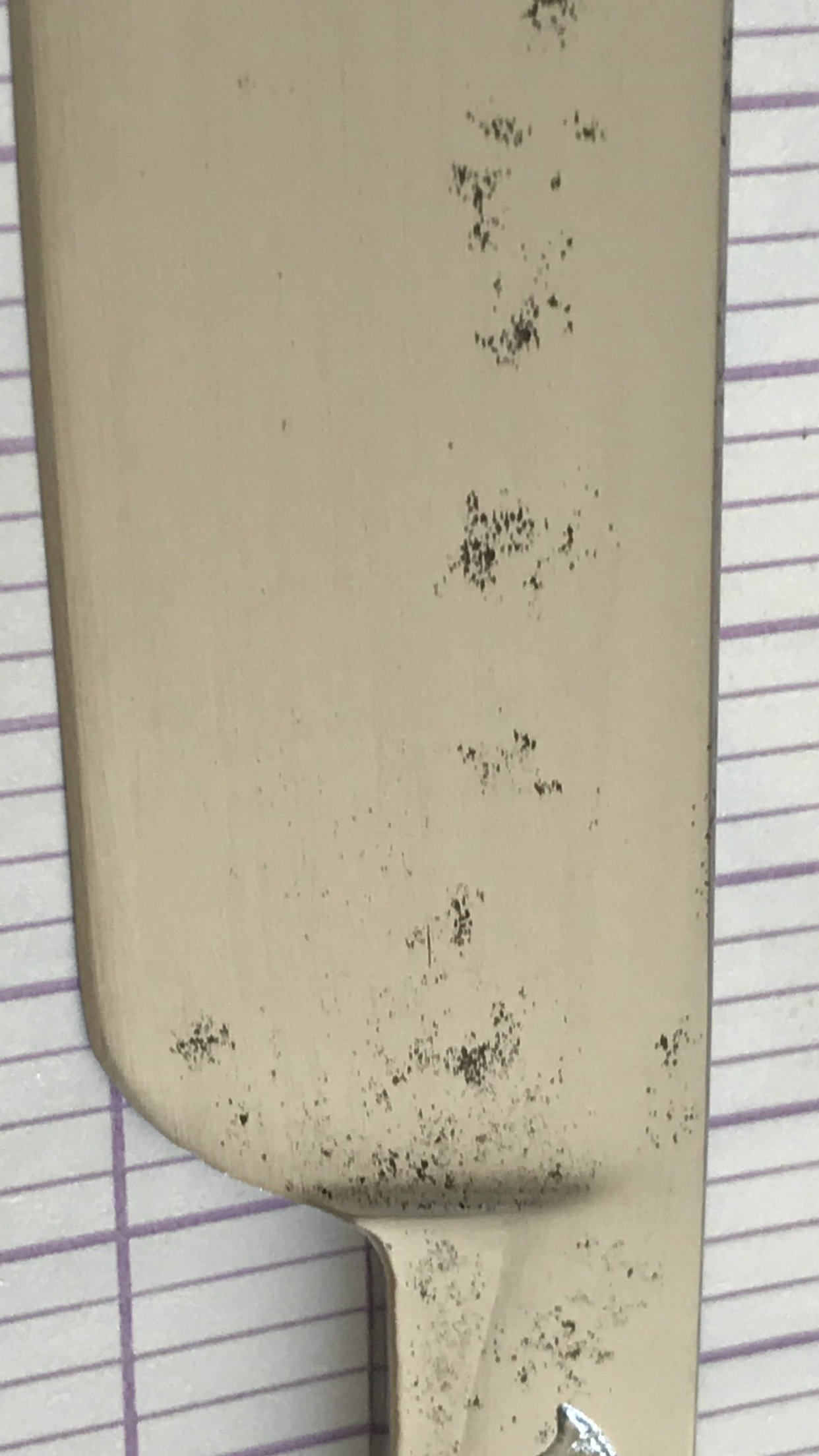 Недавно увлёкся опасными бритвами и их реставрацией. Попалась мне одна бритва Geo Wostenholm & son вроде в хорошем состоянии (насколько я могу судить), прочитал пронёс, по идее и брить должна хорошо Решил ее привести в порядок. Начитался, насмотрелся, подготовился, приступил.... Очень нужен совет ..... Сделал одну сторону (пропустил несколько шагов) чтобы спросить совет и приблизительно посмотреть на результат.. Что сделал: наждачная бумага 240-400-500-800-1000 затем алмазная паста 20/14 ( пропустил 1200-1500-2000 и пасты меньшей фракции) Как убрать каверны и чем? ( полировка... я читал... но если полировать целенаправленно проблемный участок, будет ямка) Нужно ли убирать каверны? ( понятно что дело вкуса... напишите пожалуйста как бы сделали вы) Наждачная бумага - делаю руками с пробкой от вина, полирую Дремелем с войлочными кругами на низкой скорости. Заранее спасибо за критику мнения и советы!! И ещё, какого данная бритва может быть года?