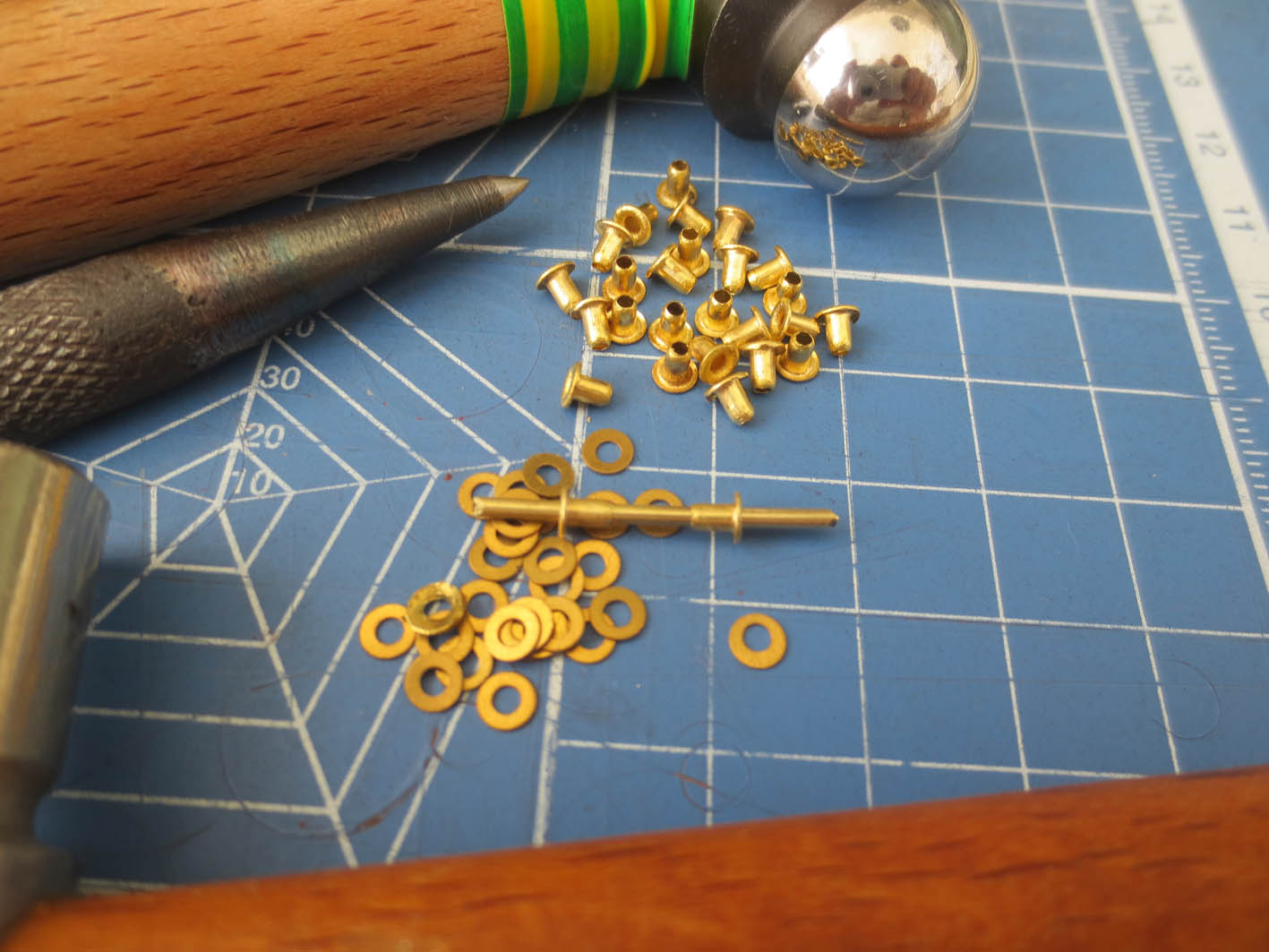 Заказал у врагов заокеанских: http://www.microfasteners.com/fwb0-0-fl ... brass.html Пришли оперативно, всего две недели. Немножко доработал их ибо плоские совсем, а это не есть гуд. Выбрал в наковальне (сменная губа для тисков) полусферу и пуансон соорудил соответствующий. Результат на фото. Конечно далеко от заводского вида, но все же неплохо.