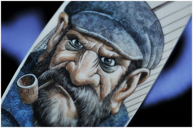 Добавлено спустя 1 минуту 4 секунды: На темной как выглядеть будет? Re: Ручка - ремонт, замена, изготовлениеСкримшоу – специальная техника резьбы по кости, а точнее – гравировка с подкраской рисунка. С помощью техники скримшоу создаются необыкновенные и очень красивые произведения искусства: рисуют на бивнях мамонта, клыках моржа, зубах кашалота, костяном дереве… Моряки во время плавания с помощью парусных игл и перочинных ножей наносили царапины и штрихи на костяные рукоятки ножей.