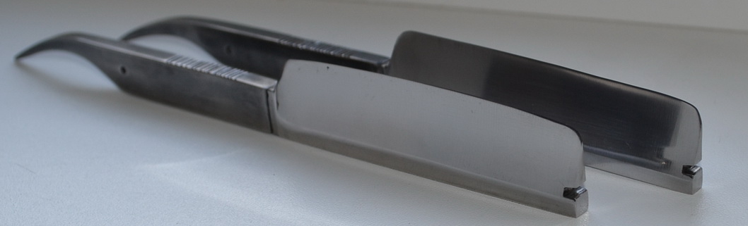 Клинки кованы вручную, геометрия просто обалдеть. Практически идеал. И это первая половина 19го века. Вот такой Марцеллот. А так как было их всего пять. То решил я сделать их полноценными бритвами. Вот что из этого вышло. Добавлено спустя 2 минуты 16 секунд: Продолжу. Хвостовики-это отдельная кропотливая и занудная работа. Спасибо нашлись помощники. Об этом потом. Добавлено спустя 1 минуту 19 секунд: И вот проект близится к завершению.