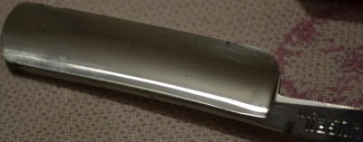 Re: Чем снять ржавчину и сохранить рисунок?Обратная сторона бритвы. Риски которые видны, от наждачки 2500.