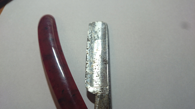 Вчера забрал бритву. Как и говорил связался с одним из форумчанинов из моего города. Ник ANATOL. Он и обещал посмотреть что можно сделать. Отдал ему бритву на заточку. Вот что получилось. Следы на месте коррозии остались, но режущая кромка целая. Спасибо Анатолию, восстановил как смог. Сказал что волос режет. Так что вечером сходил в душ чтобы распарить получше щетину и приступил к бритью.