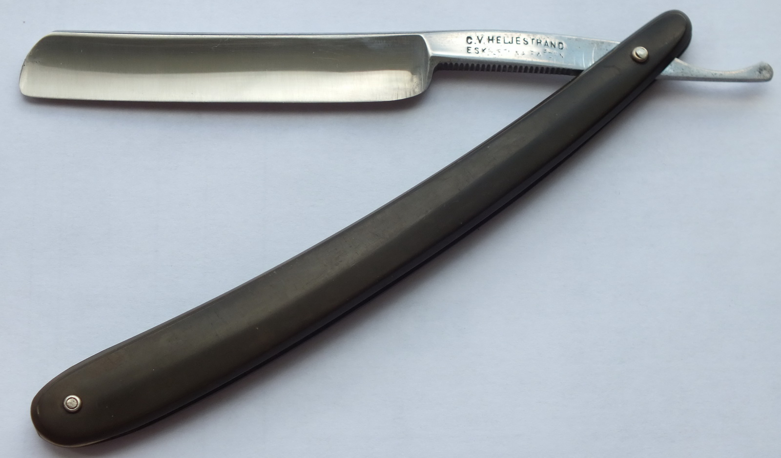 Швед Johan Engström в неплохом сохране. Рукоятка пластик. Клинок 5/8, вогнутость полная, размеры 136х18х4,5 мм. Бритва заточена и готова к бритью.