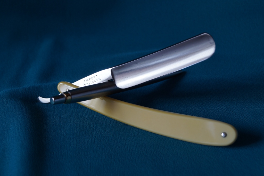 Ручка из кости КРС, состояние очень приятное, заточена и готова к бритью. На полотне, возле обушка, есть пару следов времени ( микро каверночки ), будем считать что это родинки, убирать не стал, геометрия бритвы- превыше всего. Размеры: ширина 14 мм, обух 3,8 мм . Цена: продан Daniel Peres Show
