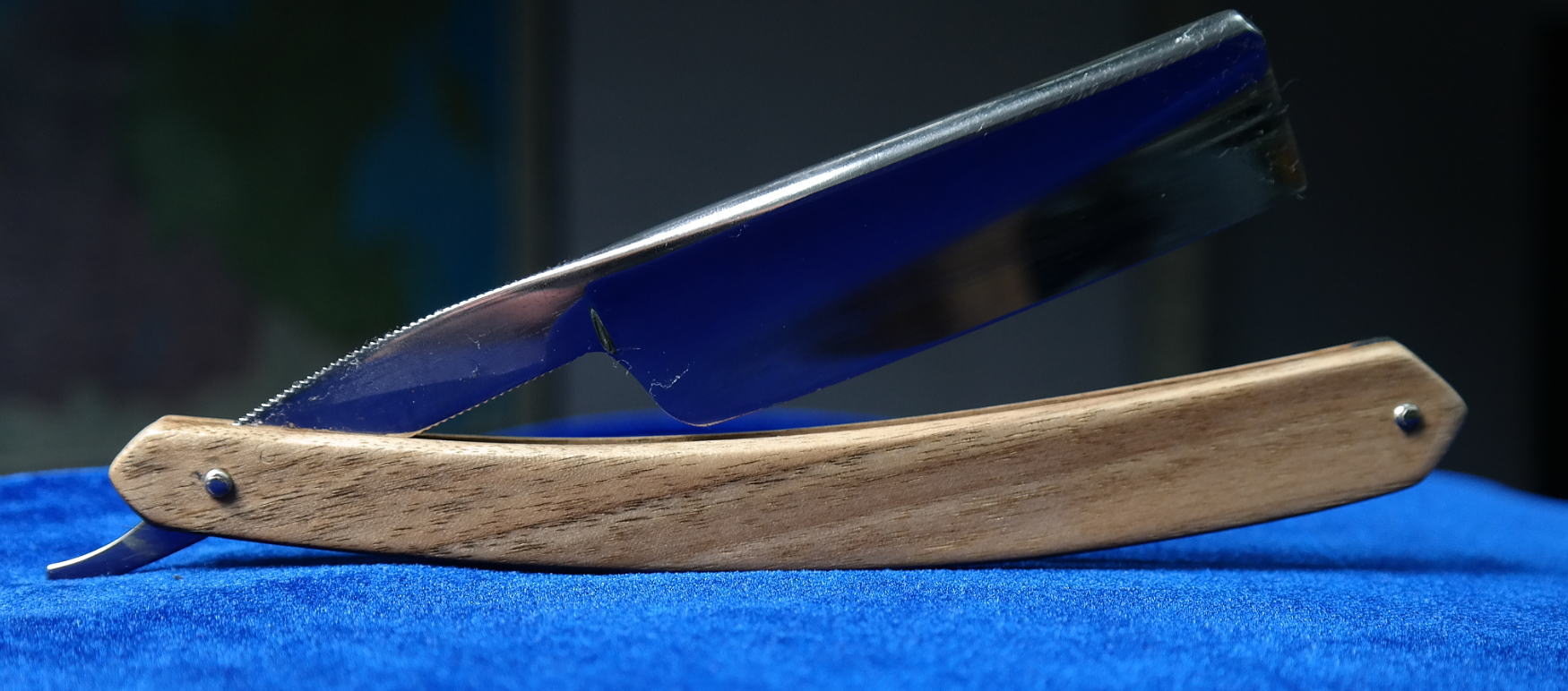 Ручка - орех, покрытие - карнаубский воск. Отклонений от технологий нет. Срочная работа ввиду брака производителя. Третий, промежуточный пин, был поставлен так, что ручка получила излишний боковой изгиб и при работе на ремне лопнула. Принято решение третий пин не ставить - бритва в ручке стоит идеально. Ремонт опасных бритв, звонить с 11-00 до 23-00, +79267729357, (viber, whats app, telegram, VK), спросить Олега.