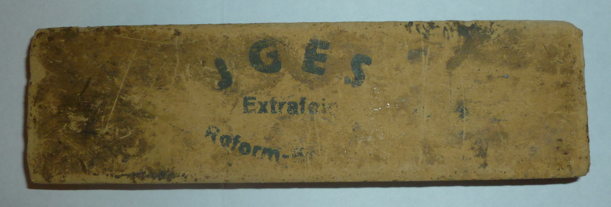 Точки явно пузырьки воздуха в натуральном камне, откуда им там взяться? Скорее всего, синтетик возможно сделан из отработки оставшейся от производства натуральных камней: Даже "тупой" гугл переводит, что он сделан из камней Jgesar -Abziehstein mit Aufreiber Für Rasiermesser und andere feine Messer aus gelbgrünem Thüringer Wasserstein hergestellt Mit dem Aufreiber u. Wasser einen Schleim reiben u. darin das Messer abziehen Jgesar -Abziehstein с развертки Для бритвой и других мелких ножей из желтого зеленого Тюрингии Wasserstein Расширитель и. Воды в слизи руб и. В ножа отключения Олег Бритва писал: