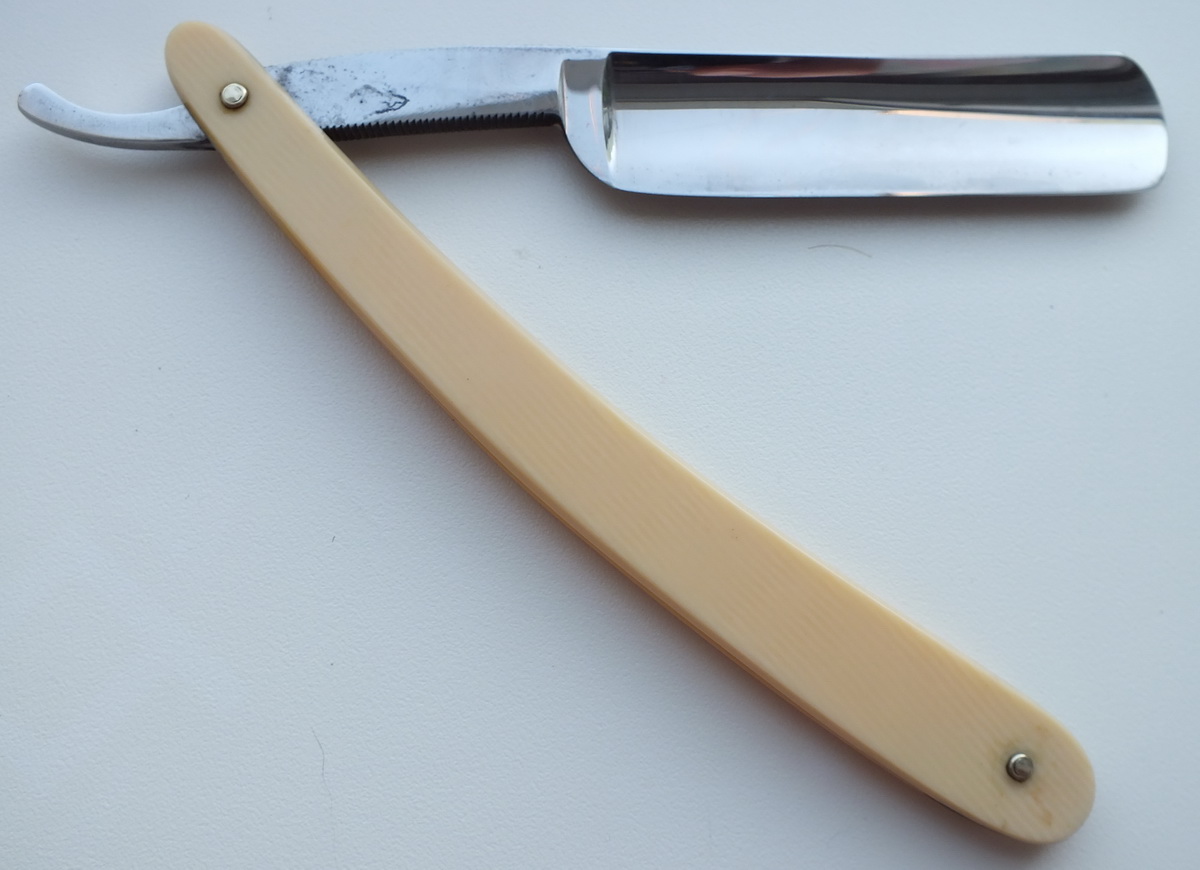Оправа целлюлоид, клин олово, пины нейзильбер. Клинок 6/8 , вогнутость Extra Hollow Ground, размеры145х21х5,2 мм. Бритва заточена и готова к бритью. Бреет с шипением разъяренной гюрзы, очень мягко и чисто.