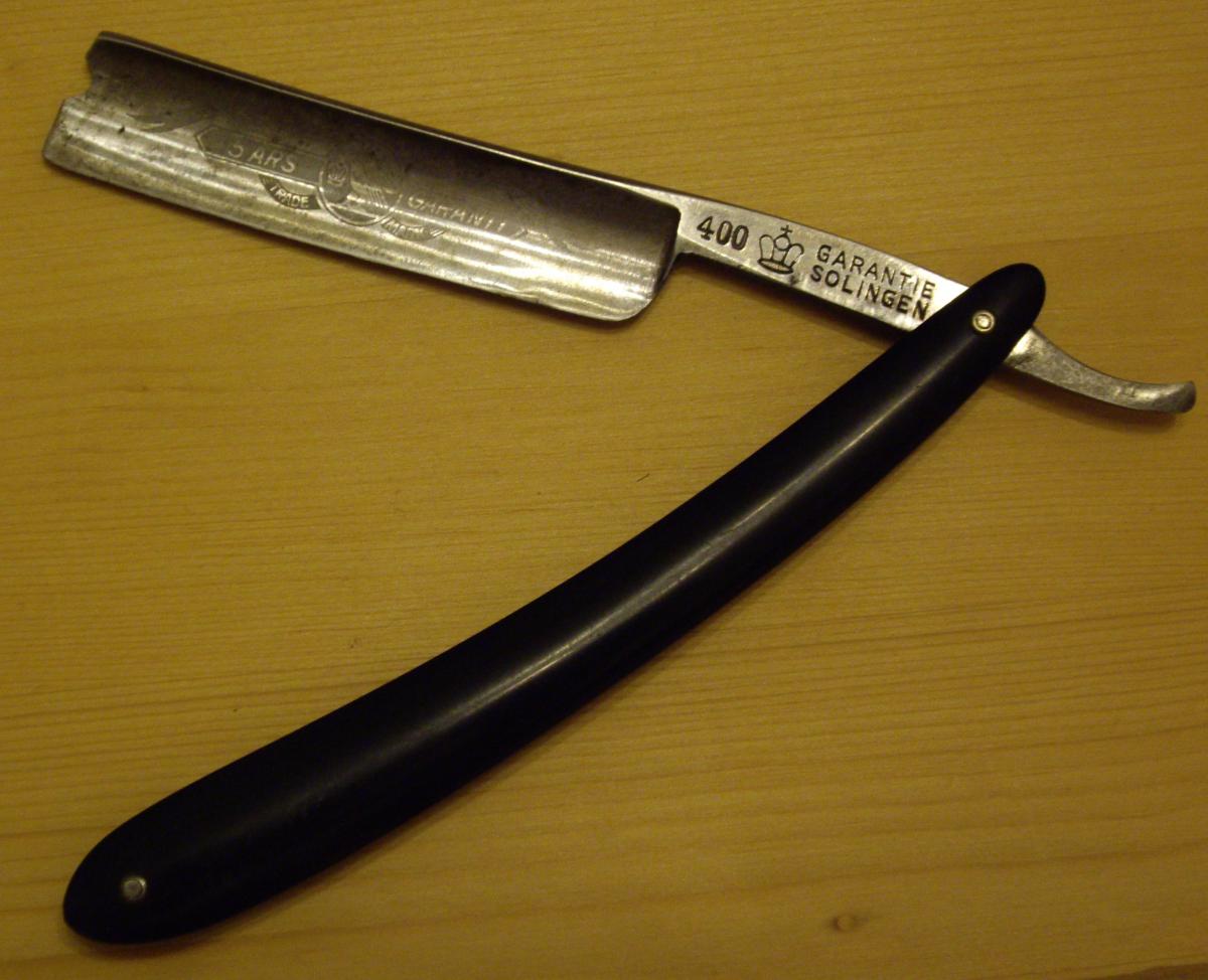 Вот такую нашел. 400 Garantie Solinger with Crown (с короной) Продавали тут. Вот не могу разглядеть, что на гравировке за трейд марк написан. Это же должно дать производителя?) Пока буду апдейтить. Такая гравировка нашлась на этой картинке: Тут тоже просят узнать, что за производитель. И шутят, что это пиратская бритва, от настоящих пиратов, гарантия "5 Аррр!": 5 års garanti - похоже это шведский. Типа 5 лет гарантии