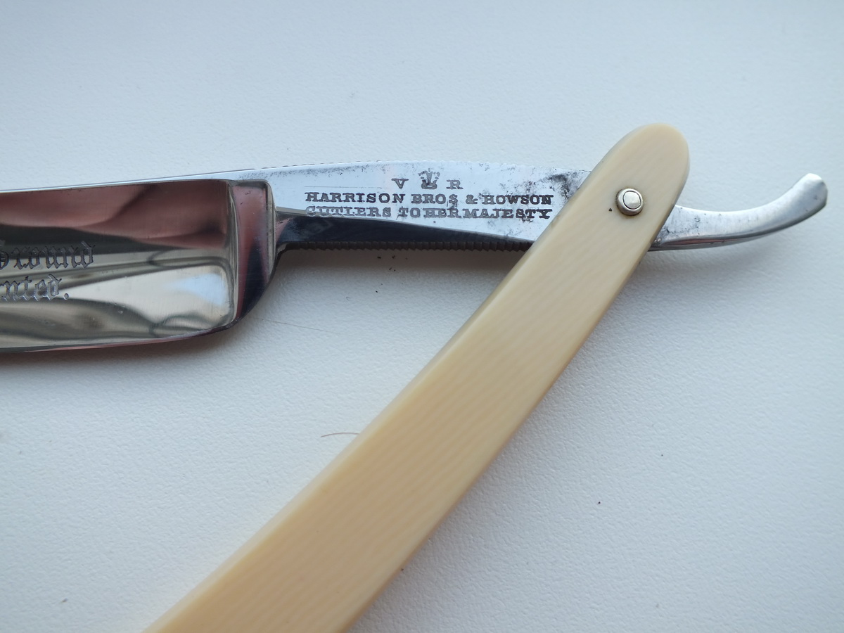 Немец Wm Elliot & Co, made in Germany. Состояние на фото. Оправа пластик. Клинок 9/16, вогнутость полная, размеры 140х17х4,2 мм. Бритва заточена и готова к бритью.