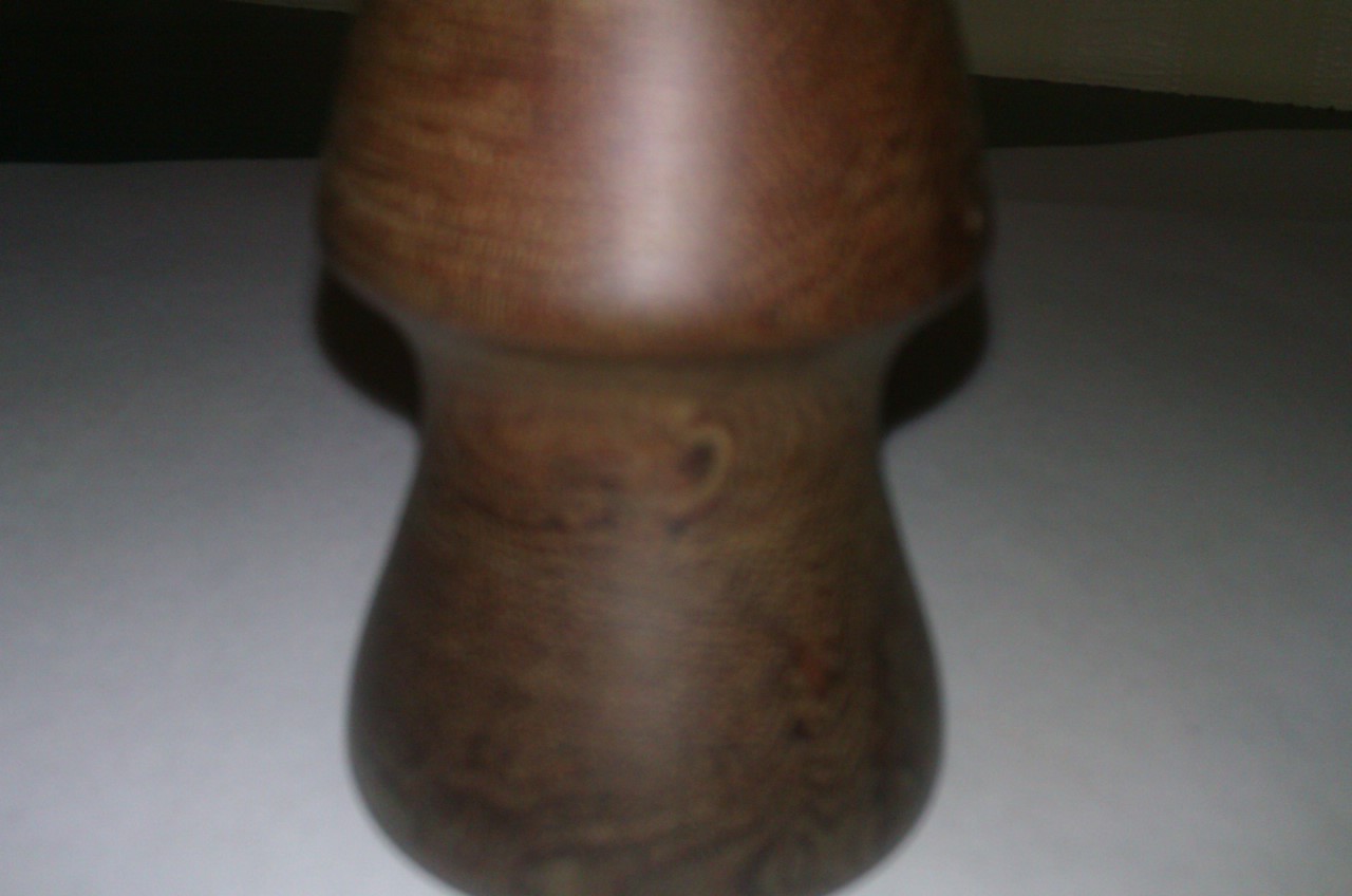 Взял заготовку круглую диам. 40 мм. пошел к токарю и выточили ручку. Мне очень понравилось. Кипяток переносит отлично, в меру тяжелая, и после обработки и полировки текстура очень напоминает дерево. Купил кисточку сильвертрип 20/60 стоимость 10 $. Выточить руку 3 $. Вот и получилось
