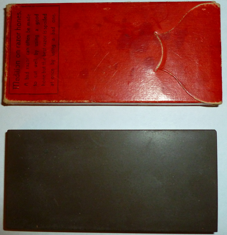 Чего то меня потянуло на них... ведь 200 лет точили на них бритвы и все были довольны Начал скупать и пробовать. И что странно... насколько же они все разные оказываются... Настолько что я пока их даже не систематезировал в голове... раньше пробовал несколько разных. И когда правил они сыпались прям взвесью глины в воде. А вот взял самый вроде наинаблатнейший SWATY - поправил... не глина. Бакелитовая связка (смола. Вообще современные водники японские те которые на связке resin bond называются это современная связка того же типа что и у Свати) И вообще именно эта связка дает очень мягкий ход и зеркало на РК К чему это я? ПРОДАНО Классический бритвенник. То на чем точили бритвы последние 200 лет. брусок типа razor hone на них прям так и пишут почти на всех Лицо не тронул - антиквариат блин. Одну сторону полностью вывел и довел. Грани скруглил. Размеры уже мерить лень Но стандарт наверное 5х2 дюйма Цену пусть будет 2200 рублей Камень от самой известной фирмы FRANZ SWATY истинный австриец