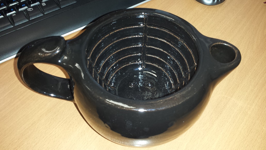 Гораций. Re: Кружка для бритьяКамрады, пришел мой "скаттл" из Омска от гончара Дмитрия. Размеры скаттла: высота 10,2 см., диаметр наружный верхний 13 см., диаметр внутренний 10,5 см., объем внутренний заливной 500 мл.