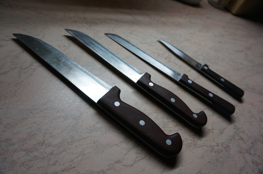 mister maloi Да показывать то особо не чего. Сведение никакое, но заточку держат хорошо, особенно после "Апекса" самодельного. И, что важно неубиваемые они, жена большим ножом умудрялась говяжьи кости рубить с помощью молотка, за что была подвергнута словесной деструкции и обещала больше так не делать, за почти двадцать лет это повторялось раз 10 Приношу извинения за качество. Спят уже мои, неохота фотосессию устраивать. Добавлено спустя 8 минут 39 секунд: Сталь, как уже писал "клапанная" нержавейка, суперреза нет, но вполне приемлемо. Ручки стеклотекстолит, посажены на клей и алюминиевые клёпки. Раньше было 5 штук, при переезде один потерялся, вместе с перфоратором