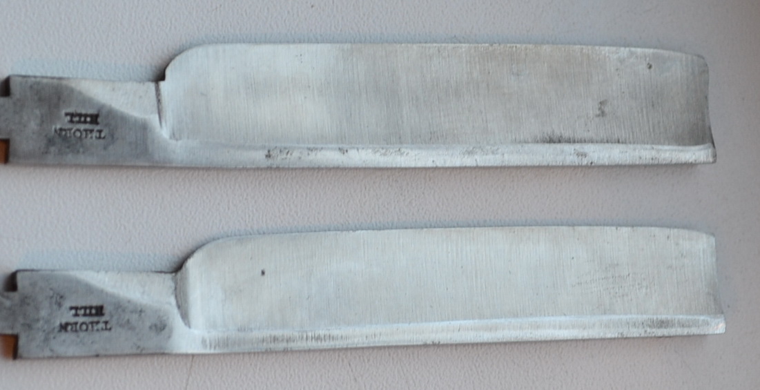 Добавлено спустя 15 минут 4 секунды: Ладно. Так будем гадать до утра. Вопрос был немного с подвохом. Начинать нужно с того что это очень старинные бритвы. Начало 19го примерно. Т.е. никакого гриндера в привычном понимании там не было тогда и в помине. Был камень. Круглый вращающийся и большой. На самом деле шлифованы два полотна. Оба шлифованы мною. Полотно №1 шлифовано абразивом в 400 и потом в 600грит Полотно №2-только в 600. Естественно убрать риски от фабричного камня сразу перескочив через два- три порядка по классу шероховатости(точности) поверхности не получится. Остается виден след фабрики. Камня. Поэтому оцениваю наиболее правильный ответ-как ответ anton. Он один сказал по глубине риски. Полотно под номером 2 ближе к фабричному. А вот так выглядят полотна прошедшие через столетия. После фабрики. До моей шлифовки. Там все мыски и носки и сточенные обухи.