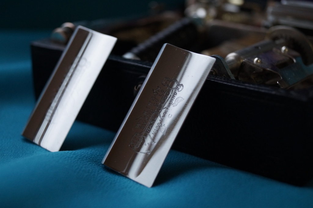 Alfred Dunhill Ltd London & Paris Описание: недельный набор для бритья, Г-образный станок со сменными лезвиями, подписанные днями недели. В наборе есть приспособление для заточки лезвий и конструкция для правки. Родной ремень был потерян во мраке времен, был изготовлен новый, проверил лично-работает. Вывод: прекрасный предмет старины и свидетельство того, как осуществлялся переход от клинковой бритвы к Т-образному станку. Переход был сложный, поиск инженерной мысли был высок и интересен. Качество стали на клинках просто великолепное, звенит как музыкальный камертон. Конструкция станка регулируемая как по наклону так и по вылету лезвия. Конструкция станка предусматривает вращающуюся витую ось, кстати очень удобная при бритье и она же выступает в роли регулировки вылета. ПС Данный набор был отреставрирован для уважаемого человека, за что ему спасибо, что дал возможность и оказал мне доверие с работой над его набором. По взаимному согласованию, мною был произведен тест на предмет бритья, результат бритья был весьма неожиданным, бреет великолепно ( мне очень понравилось), прямо как на машине времени слетал в то время, где господа позволяли себе купить довольно дорогую вещь и бриться ею, простым людям врядли был доступен такой набор. Надеюсь данный станочек займет достойное место в коллекции и в истории нашего форума.