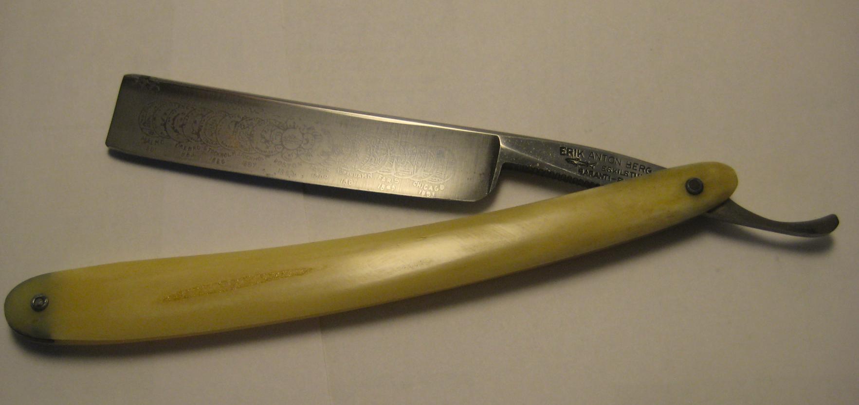уралец: Что за производитель Erik Anton Berg? Предложили старую бритву от него,ручка ,похоже, неродная ,но само лезвие в очень хорошем состоянии, без всяких следов ржавчины, но и следов предпродажной подготовки нет, лезвие темное. На лезвии ряд (Штук восемь) золотых медалей и четкое клеймо рыбы,видимо акулы. Ширина лезвия ,скорее всего, 6(8 дюйма Может кто подсказать. что это зв бритвы, то в поиске не нашел?