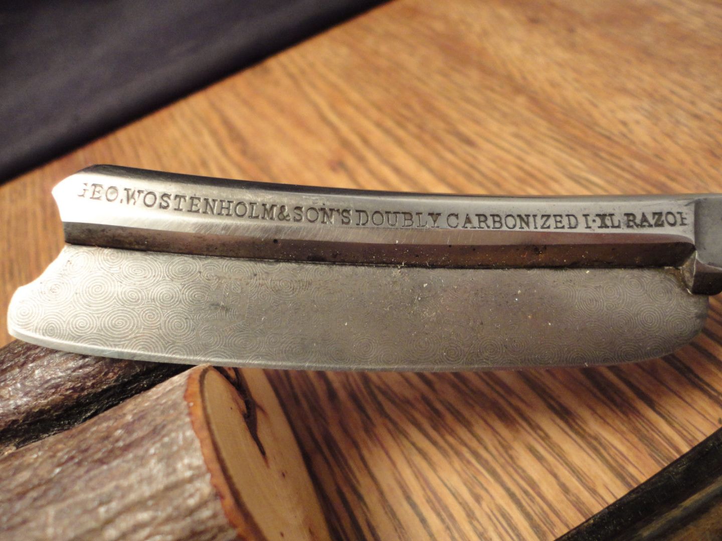 Для меня важно по этой бритве - ЭТО ОНО ИЛИ НЕ ОНО. P.S. На сайте нет упоминания гравировки, имитирующей рисунок дамасской стали (экземпляр под № 2 на Strazors), а на моем таком же экземпляре есть. Описание не полное. Не хотелось бы ошибиться. Возможно, кто-то видел, держал в руках экземпляр № 1 в отличном качестве.