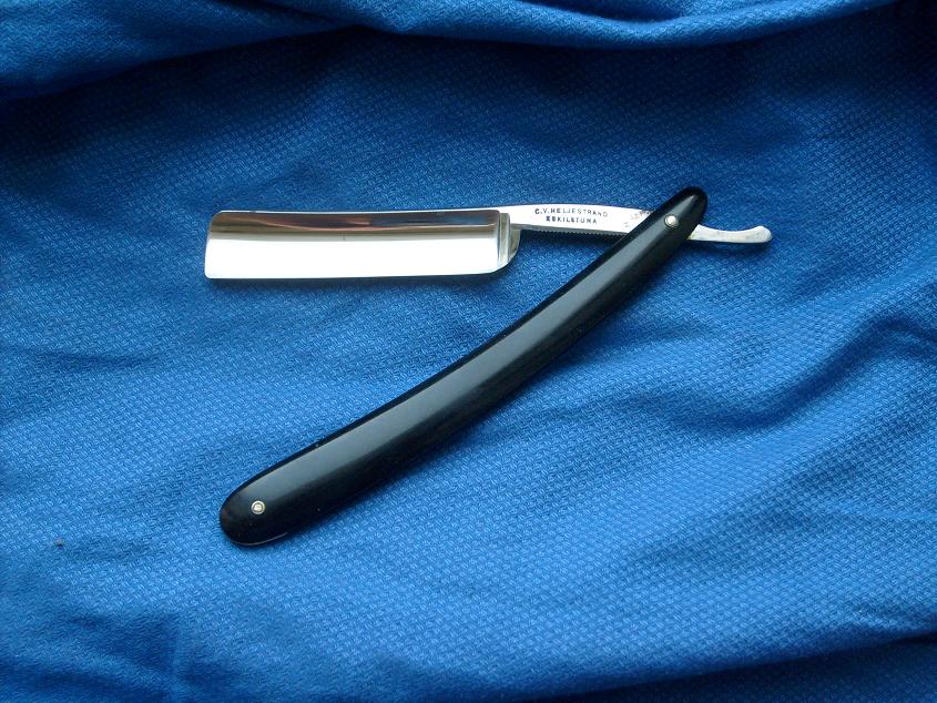 1. Joseph Elliot Шеффилд (имеет штамп Fine India Steel). Ширина 17 мм. Толщина обуха 5 мм. Линия режущей кромки, заданная обухом, своеобразная - прямой участок в середине и изгиб в районе носа. Цена 5000 руб. 2. Бритва Heljestrand (Швеция Эскильстуна). ПРОДАНО. Бритвы заточены и готовы к бритью. Перфекционисты могут пройтись ремнём с пастой или суперфинишным камнем. Дополнительные фото по требованию.