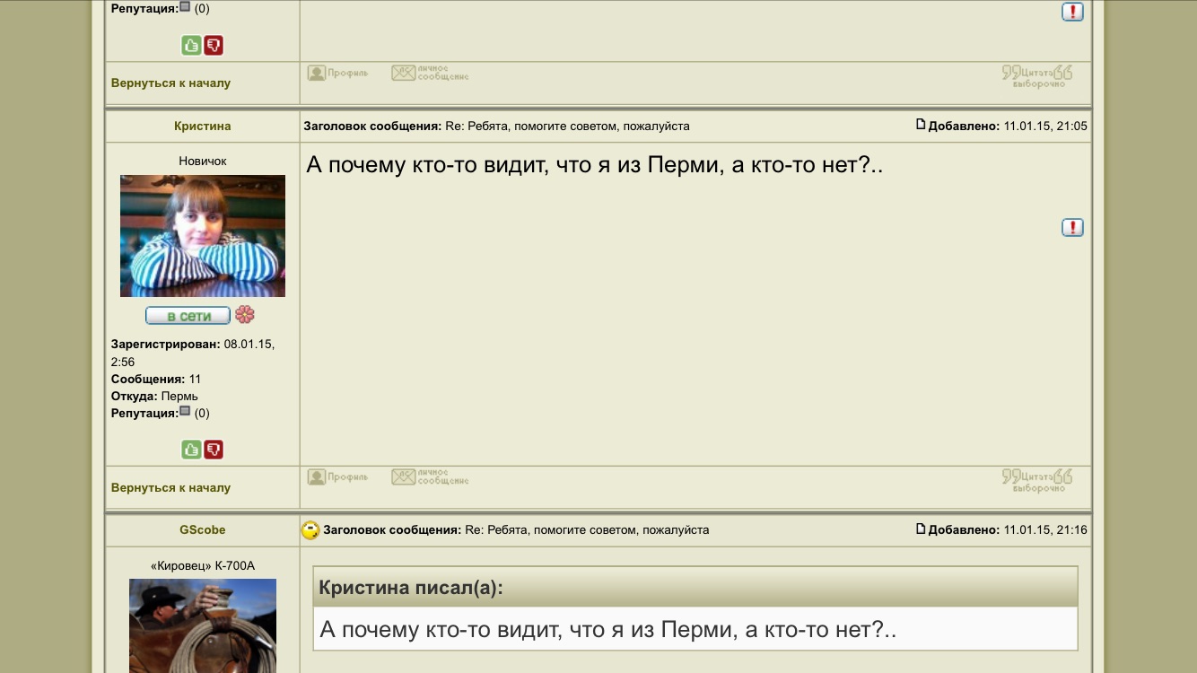 Кристина писал(а):А почему кто-то видит, что я из Перми, а кто-то нет?..
