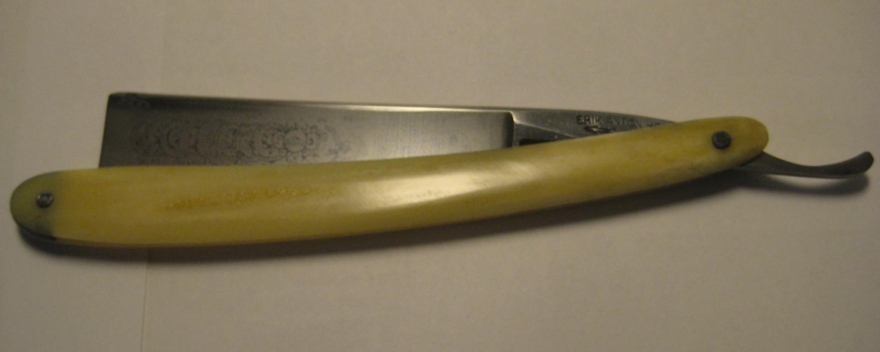 уралец: Что за производитель Erik Anton Berg? Предложили старую бритву от него,ручка ,похоже, неродная ,но само лезвие в очень хорошем состоянии, без всяких следов ржавчины, но и следов предпродажной подготовки нет, лезвие темное. На лезвии ряд (Штук восемь) золотых медалей и четкое клеймо рыбы,видимо акулы. Ширина лезвия ,скорее всего, 6(8 дюйма Может кто подсказать. что это зв бритвы, то в поиске не нашел?