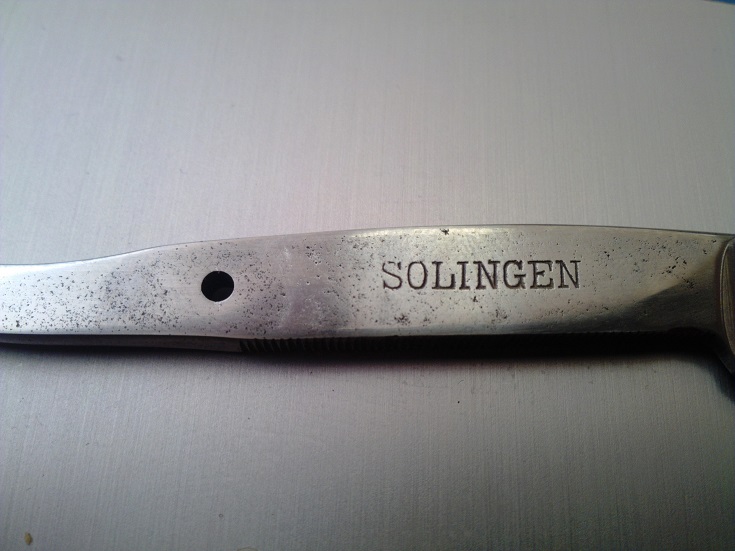 Начал аккуратно наждачить бритву. На эрле, спинке и хвосте остаются темные каверны. Чтоб их вывести придется снять прилично металла, а так не хочется и боязно. Плюс, если наждачить дальше, уйдут клейма. Бритву планирую для собственного пользования, так что вопрос эстетики на втором плане. И вообщем вопросы: Надо ли дальше выводить каверны или оставить как есть? И второе, если оставлять так, то как их осветлить?