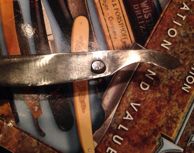 Re: Бритва до... и после...Вообще сверлильный станок появился очень давно. Поэтому отверстие могли и сверлить. А некруглое оно как раз может быть именно из-за того, что лезвие со временем перетералось о пин. Хотя могло и изначально быть неровным, если его именно пробивали.