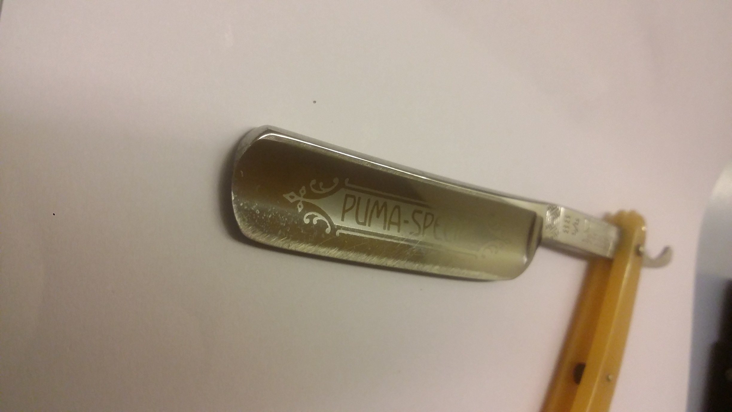 Re: Вопрос по восстановлению бритвы.В работе бритва точно не была, а износ обуха от того что мне пришлось сточить примерно 0.5 мм РК чтобы убрать дырочки от коррозии. Фетровым диском до самой РК я не доходил примерно 2 мм и там остался заметный слой патины. Пока что заточил на кусочке бельгийца и немного поводил по чистому офицерскому ремню. Надеюсь приятель найдет вскорости старый отцовский прибор с натяжением ремня - буду на нем заправлять. Уже есть неуверенный рез волоса на. вису. А бриться я клинковой бритвой пока что не пробовал....