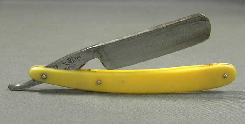 В начале 2008го года я решил поворошить фамильное прошлое своей семьи,в основном старый дом моего прадеда,весёлый был такой старикан,бухал по чёрному,костылём дрался,а своих семерых детей учил уму разуму своей деревянной ногой,кароче,нравился мне Деда Митя.И вот,после долгих часов поисков,я нашёл действительно нечто достойное моего внимания,его бритва...Меня просто зачаровал её фирменный знак-корона и сабля,её линии,изгибы,её(как мне по началу показалось)обломанный конец.Она до сих пор в ужасном состоянии,смерть кароче,не поддаётся восстановлению.Я спросил у 5-ого ребёнка Мити,чтож она так плоха-то?И он,с деревенским простодушием перечислил все зверства,которые пришлись на бритву:картошку ей чистили,верёвки резали,деревяшки стругали,в догонялки играли,в печке колупались...ужас....Я хотел продать бритву,чтоб просто забыть о ней,будто не было такого ужаса,( http://www.britva.ru/forum/viewtopic.php?f=7&t=656" onclick="window.open(this.href);return false; ).Так-то она мне дорога,она у меня первая.Я хочу найти достойную замену дедовой бритве,чтоб митька,там,вверху,или внизу,порадовался,что его помнят и уважают...Я взываю к вашему милосердию,пожалуйста,ну продайте кто-нить достойный экземпляр,а не ржавь поганую! P.S. Если у кого есть ручка с логотипом(корона и сабля)то тоже куплю.