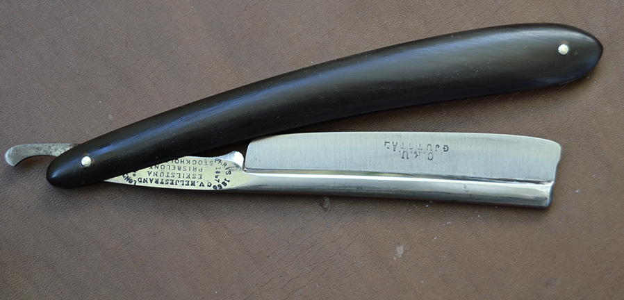 Швеция. Ширина 5/8. Рукоять из черной древесины, предположительно из эбена покрыта карнаубским воском. Шайбы родные. Заточена. Продано Spoiler Show