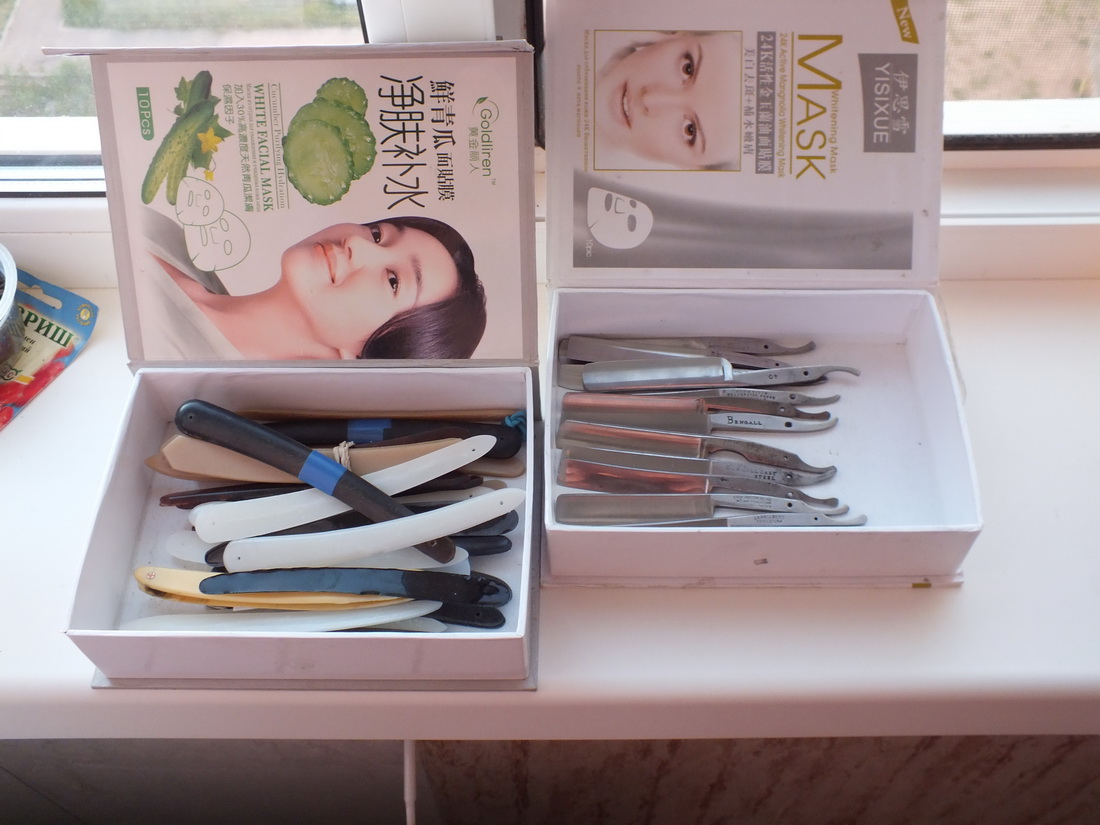 Re: Хранение опасных бритв!Спасибо за критику. То, что не совсем тру метод, согласен. На фото бритвы незаточенные - в процессе восстановления или представляющие только коллекционную ценность (и то, небольшую). С форумчанами солидарен, от такого хранения понемногу отхожу.