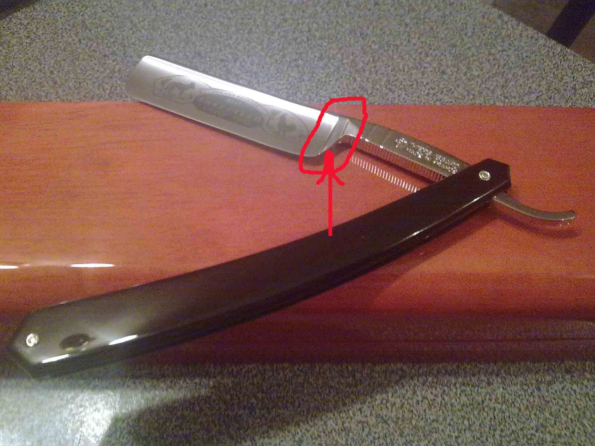 Если не сложно, прошу объяснить - зачем перетачивали участок 1? Судя по наличию заводской насечки, это шейка бритвы.