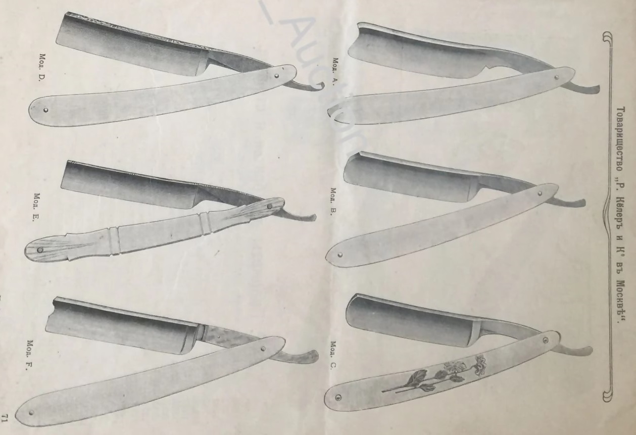 Вот эта бритва №1263 модель Е в каучуковой оправе а тут список продаваемых бритв, их номера в каталоге и фото самих бритв заодно - откуда берутся такие номера типа 1263. Это просто порядковый номер продаваемого изделия в каталоге. Нумерация для того, что бы покупатель почтой заказал предмет, просто указав его номер Spoiler Show