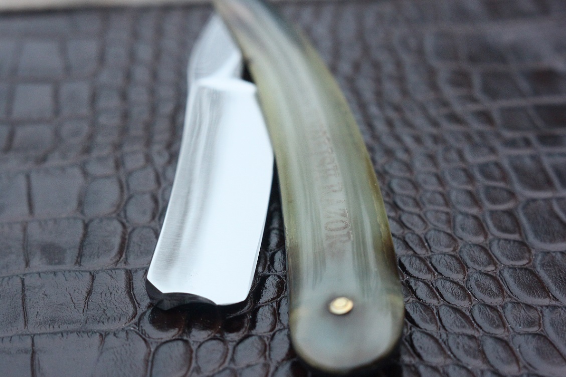 Re: Продаётся от KarangiWade and Butcher. Старая бритва. 5\8 На ерле присутствуют небольшие следы времени, при профилактики которых надпись стала просматриваться с трудом. Но, как писал форумчанин -"От этого он СтИзом не стал". Ручка рог в прекраснейшем состоянии. Интересная геометрия. Мощный обух (6 мм). Возле головы с лицевой стороны слегка неравномерная кромка (чуть шире). Бритва до заточки по всей видимости в использовании не была! Замечательный рез волоса. Заточка N*X*S. Продана