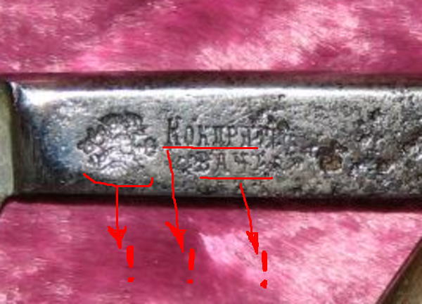 Re: Кондрат Квача (Поиск правды)Вот как выглядело клеймо Кондратовых того времени. Это шашка драгунская. Я только не разобрал, там 1873 стоит год, или...