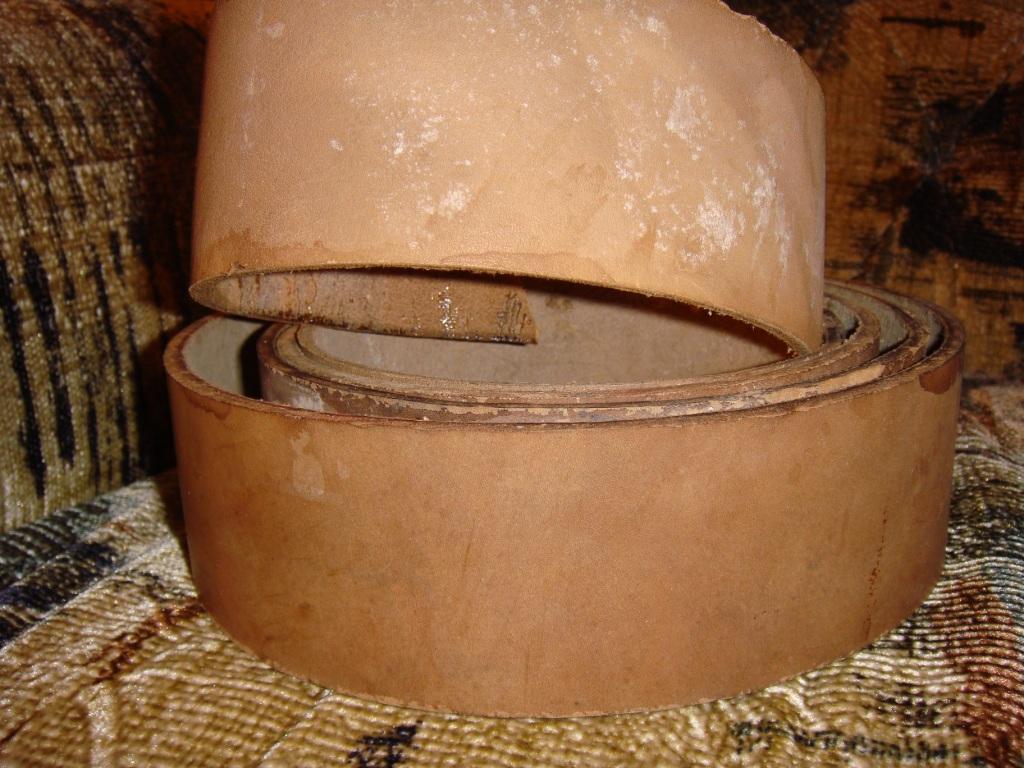 Сегодня на барахолке наткнулся на полосу кожи, длиной метров 10. Состоит из кусков длиной примерно 80 см, концы сработаны на клин, склеены... Толщина 5 мм, ширина 65 мм. Взял 3 метра...прозапас. Мой широкий в прошлом году намок и умер. Попробую поработать наждачкой и сделать достойную ему замену...  Вот только что под ручки приспособить....