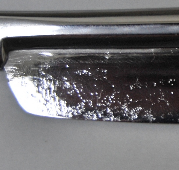Попала ко мне в руке вот такая красивая бритва. Ручка погрызена, но это не страшно, поменяю. На лезвии, похоже, остатки ржавчины заполированы. Хочу совета спросить: лезвие тонкое (по сравнению с бритвами от МЗШ или "Союз"ом), а раковинки убрать хотелось бы. Из практики что было бы правильнее: сразу наждачкой или сперва химию попробовать? Re: Начинающие реставраторы...А в профиль(с носа прямо) фото можно?