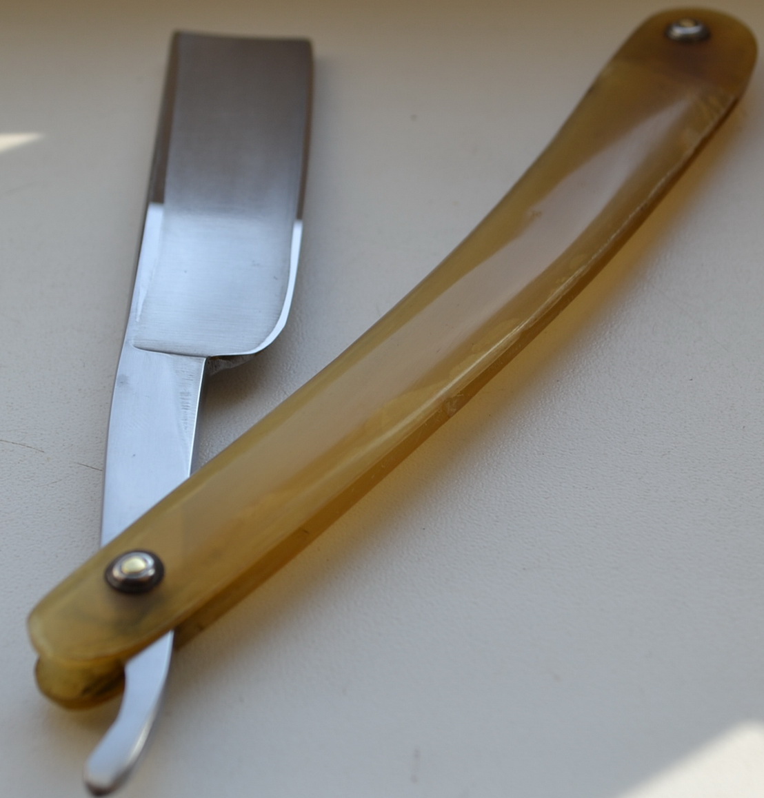 Насколько я знаю, это старая английская бритва из Шеффилда. По словам продавца, это конец 19 века. Но почему она такая "толстая", семь с небольшим мм, я имею в виду толщина обуха? Интересует примерный возраст и стоимость. Рукоять из рога, всего одна небольшая трещинка у пина. Да и вообще, накидайте информации побольше!
